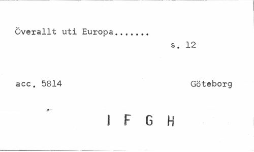 //// Överallt uti Europa... //// s. 12 //// acc. 5814 Göteborg //// ! F G H ////