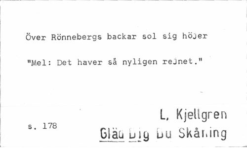 //// Över Rönnebergs backar sol sig höjer "Mel: Det haver så nyligen rejnet." //// L, Kjellgren //// s. 178 ,, //// ulao u]9 du Skar,mg ////