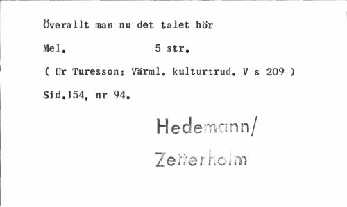 //// Överallt man nu det talet hör Mel. 5 str. //// ( Ur Turesson: Värml. kulturtrud. V s 209 ) Sid.154, nr 94. //// H ederna nn/ //// t //// Zeiterholm ////