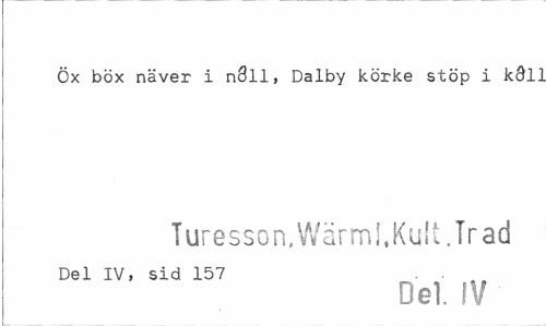 //// Öx box näver i n8ll, Dalby körke stöp i köl] //// Turesson, Wärml, Kult. Trad //// Del IV, sid 157 //// Del. IV ////