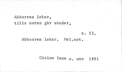 //// Abborren leker, //// tills noten går sönder, //// s. 53. //// Abborren leker. Mel.not. //// Gislow Inne o. ute 1891 ////