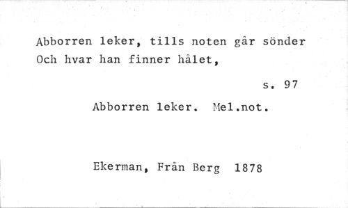 //// Abborren leker, tills noten går sönder Och hvar han finner hålet, //// s. 97 //// Abborren leker. Mel.not. //// Ekerman, Från Berg 1878 ////