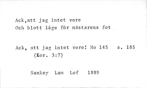 //// Ack,att jag intet vore //// Och blott låge för mästarens fot //// Ack, att jag intet vore! No 145 s. 185 //// (Kor. 3:7) //// Sankey Lam Lof 1889 ////
