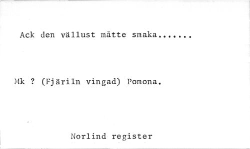 //// Ack den vällust måtte smaka //// Mk ? (Fjäriln vingad) Pomona //// Norlind register ////