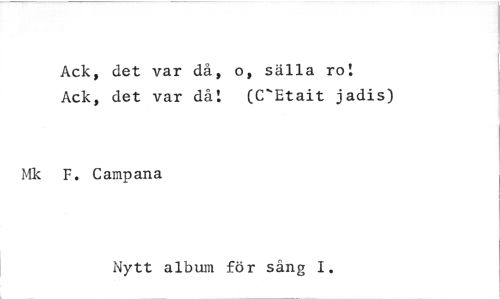 //// Ack, det var då, o, sälla ro! Ack, det var då! (C'Etait jadis) //// Mk F. Campana //// Nytt album för sång I. ////