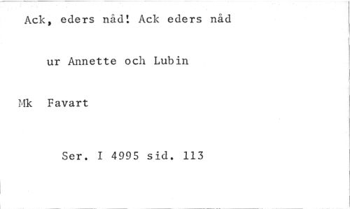 //// Ack, eders nåd! Ack eders nåd ur Annette och Lubin //// Mk Favart //// Ser. I 4995 sid. 113 ////