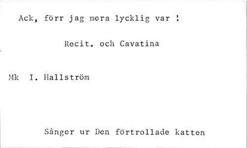 //// Ack, förr jag mera lycklig var Recit. och Cavatina //// Mk I. Hallström //// Sånger ur Den förtrollade katten ////