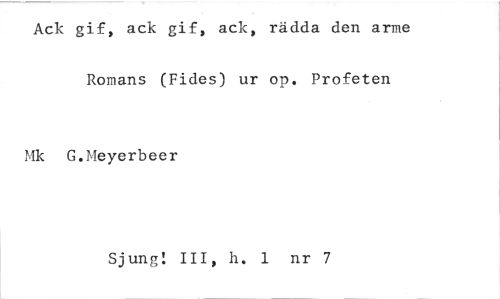 //// Ack gif, ack gif, ack, rädda den arme Romans (Fides) ur op. Profeten //// Mk G.Meyerbeer //// Sjung: III, h. 1 nr 7 ////