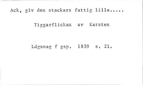 //// Ack, giv den stackars fattig lilla //// Tiggarflickan av Karsten //// Ldgsmag f gsp. 1839 s. 21. ////