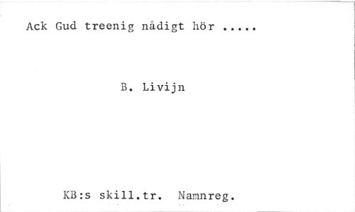 //// Ack Gud treenig nådigt hör //// B. Livijn //// KB:s skill.tr. Nannreg. ////