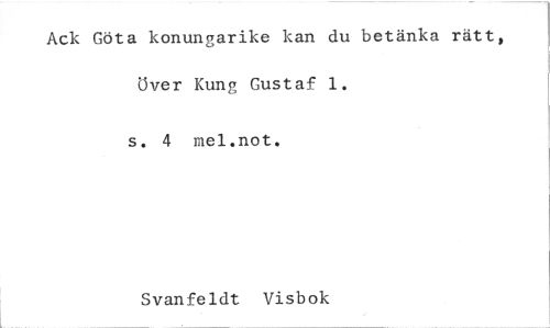 //// Ack Göta konungarike kan du betänka rätt, över Kung Gustaf 1. //// s. 4 mel.not. //// Svanfeldt Visbok ////