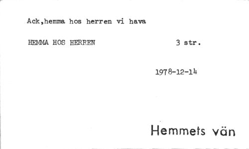 //// Ack,hemma hos herren vi hava //// HEMMA HOS HERREN 3 str. //// 1978-12-14 //// Hemmets vän ////
