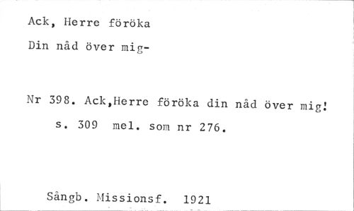 //// Ack, Herre föröka Din nåd över mig- //// Nr 398. Ack,Herre föröka din nåd över mig! s. 309 mel. som nr 276. //// Sångb. Missionsf. 1921 ////