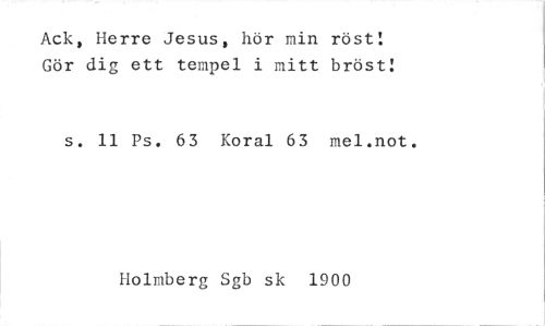 //// Ack, Herre Jesus, hör min röst! Gör dig ett tempel i mitt bröst: //// s. 11 Ps. 63 Koral 63 mel.not. //// Holmberg Sgb sk 1900 ////