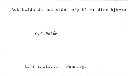 //// Ack Hilda du ack skänk mig blott ditt hjärta //// KB:s skill.tr Namnreg. ////