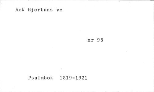 //// Ack Hjertans ve //// nr 98 //// Psalmbok 1819-1921 ////