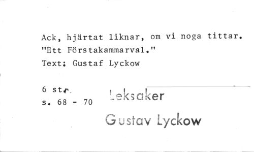 //// Ack, hjärtat liknar, om vi noga tittar. "Ett Förstakammarval." Text; Gustaf Lyckow //// 6 str. ..eKsaKer //// s. 68 - 70 //// ‘42u stav yckow ////