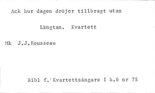 //// Ack hur dagen dröjer tillbragt utan Längtan. Kvartett Mk J.J.Rousseau //// Bibl f.*Kvartettsängare I h.6 nr 75 ////