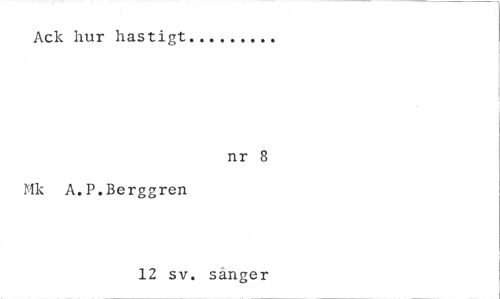 //// Ack hur hastigt //// nr 8 //// Mk A.P.Berggren //// 12 sv. sånger ////