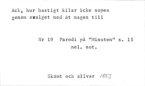//// Ack, hur hastigt kilar icke supen genom svalget ned at magen till //// Nr 19 Parodi på "Minuten" s. 13 mel. not. //// Skämt och allvar /5T3 ////