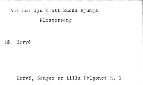 //// Ack hur ljuft att kunna sjunga Klostersång //// Mk Herv6 //// Herv6, Sånger ur Lilla Helgonet h. 1 ////