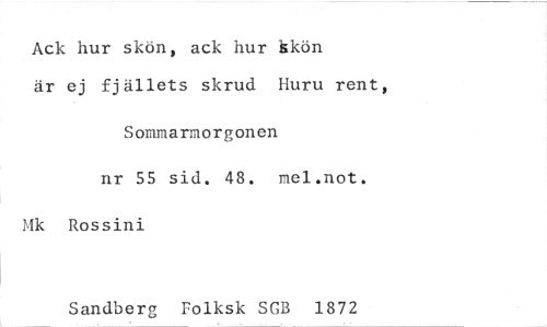 //// Ack hur skön, ack hur lekön är ej fjällets skrud Huru rent, //// Sommarmorgonen //// nr 55 sid. 48. mel.not. Mk Rossini //// Sandberg Polksk SGB 1872 ////