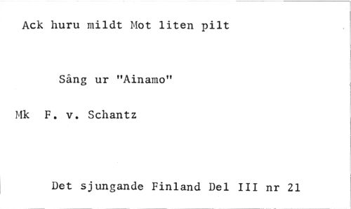 //// Ack huru mildt Mot liten pilt //// Sång ur "Ainamo" Mk F. v. Schantz //// Det sjungande Finland Del III nr 21 ////