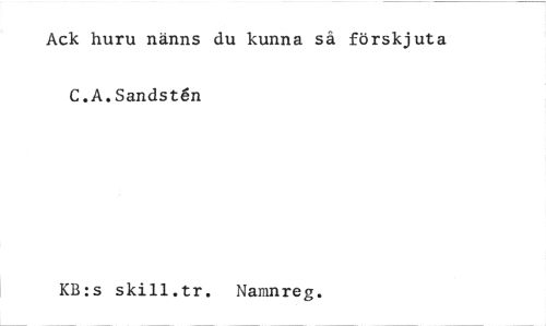 //// Ack huru nänns du kunna så förskjuta //// C.A.Sandst6n //// KB:s skill.tr. Naninreg. ////