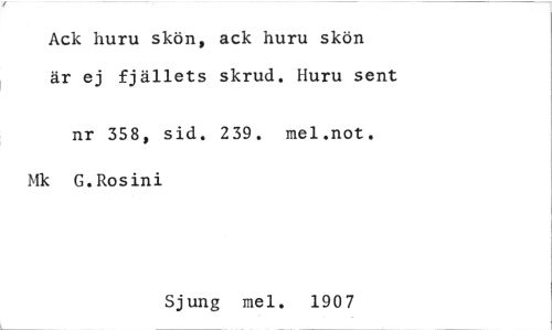 //// Ack huru skön, ack huru skön är ej fjällets skrud. Huru sent //// nr 358, sid. 239. mel.not. Mk G.Rosini //// Sjung mel. 1907 ////