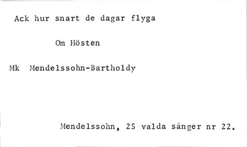 //// Ack hur snart de dagar flyga Om Hösten //// Mk Mendelssohn-Bartholdy //// Mendelssohn, 25 valda sånger nr 22. ////