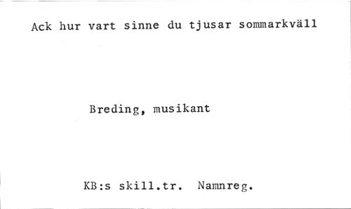 //// Ack hur vart sinne du tjusar sommarkväll //// Breding, musikant //// KB:s skill.tr. Namnreg. ////