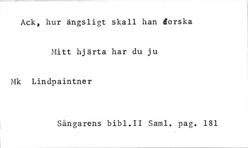 //// Ack, hur ängsligt skall han dorska //// Mitt hjärta har du ju Mk Lindpaintner //// Sängarens bibl.II Sami. pag. 181 ////