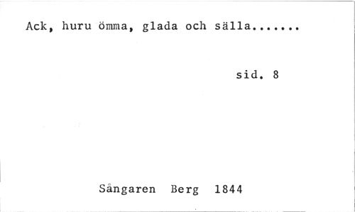 //// Ack, huru ömma, glada och sälla //// sid. 8 //// Sångaren Berg 1844 ////