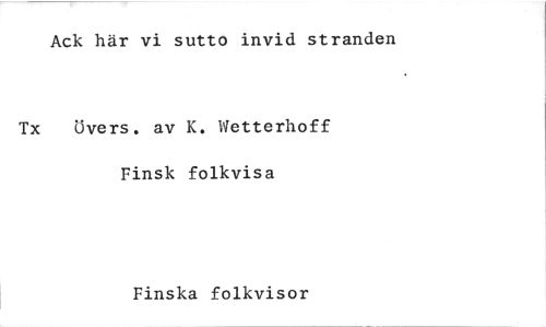 //// Ack här vi sutto invid stranden //// Tx övers. av K. Wetterhoff //// Finsk folkvisa //// Finska folkvisor ////