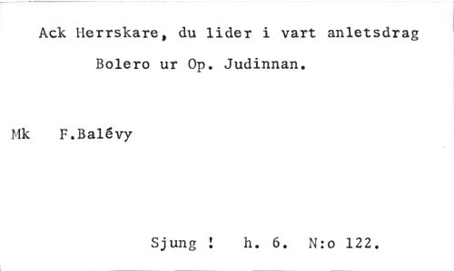 //// Ack Herrskare, du lider i vart anletsdrag Bolero ur Op. Judinnan. //// Mk F.Bal6vy //// Sjung ! h. 6. N:o 122. ////