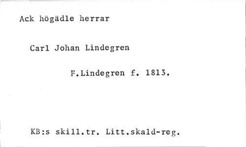 //// Ack högädle herrar //// Carl Johan Lindegren //// F.Lindegren f. 1813. //// KB:s skill.tr. Litt.skald-reg. ////