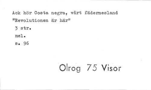 //// Ack hör Costa negra, vårt fädernesland //// "Revolutionen är här" //// 3 str. //// mel. //// s. 96 //// Olrog 75 Visor ////