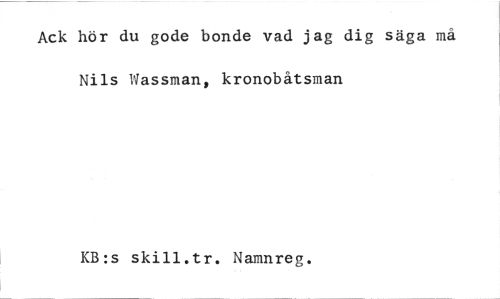 //// Ack hör du gode bonde vad jag dig säga må Nils Wassman, kronobåtsman //// KB:s skill.tr. Namnreg. ////