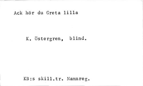 //// Ack hör du Greta lilla //// K. Östergren, blind. //// KB:s skill.tr. Namnreg. ////