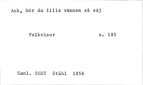 //// Ack, hör du lilla vännen så säj //// Folkvisor s. 185 //// Samt. SGST Ståhl 1856 ////