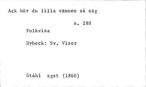 //// Ack hör du lilla vännen så s g //// s. 280 //// Folkvisa //// Dybeck: Sv. Visor //// Ståhl sgst (1860) ////