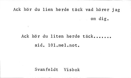 //// Ack hör du lien herde täck vad hörer jag //// om dig. //// Ack hör du liten herde täck //// aid. 101.mel.not. //// Svanfeldt Visbok ////