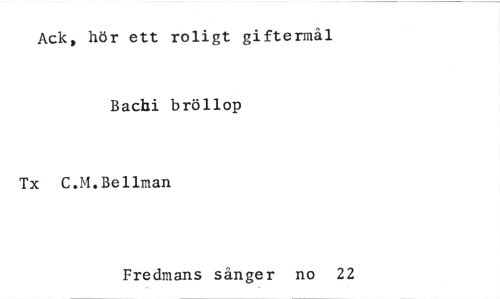 //// Ack, hör ett roligt giftermål //// Bachi bröllop //// Tx C.M.Bellman //// Fredmans sånger no 22 ////