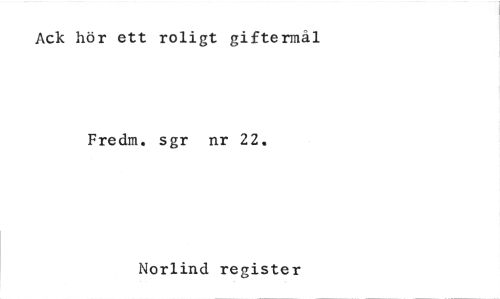 //// Ack hör ett roligt giftermål //// Fredm. sgr nr 22. //// Norlind register ////