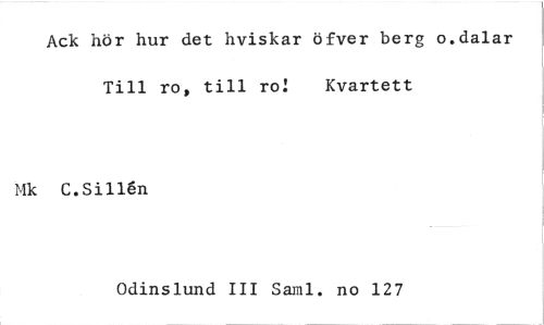 //// Ack hör hur det hviskar öfver berg o.dalar //// Till ro, till ro: Kvartett //// Mk C.Sill6n //// Odinslund III Saml. no 127 ////