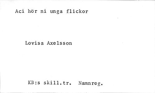 //// Aci hör ni unga flickor //// Lovisa Axelsson //// KB:s skill.tr. Namnreg. ////