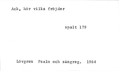 //// Ack, hör vilka fröjder //// spalt 179 //// Lövgren Psalm och sångreg. 1964 ////
