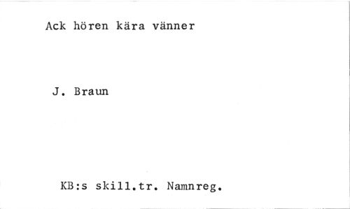 //// Ack hören kära vänner //// J. Braun //// KB:s skill.tr. Namnreg. ////