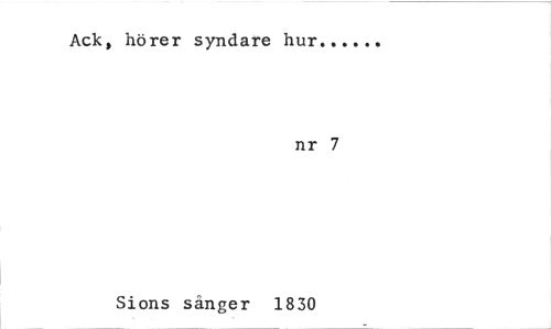 //// Ack, hörer syndare hur //// nr 7 //// Sions sånger 1830 ////