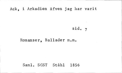 //// Ack, i Arkadien äfven jag har varit //// sid. 7 //// Romanser, Ballader m.m. //// Saml. SGST Stähl 1856 ////